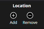 Use the Add button to access the Add Workspace Location Menu. Click on either the arrow (upper left) or triangle (lower right) icons on a location or use the drop-down menu in the upper left of the workspace to select a location. Press the Remove button while a location is selected to delete that location from the workspace. Adding Locations and Spaces is only available during the Locations Action of the Define Phase. See Locations under Workspaces - Menus for additional details about the drop-down menu and editing locations.