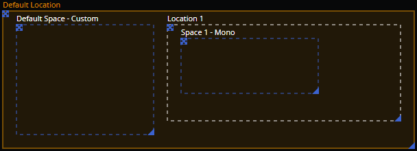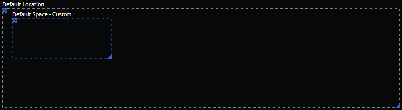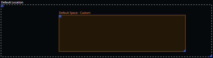 Like Locations, A selected space can be moved around the workspace, within a parent location if it is contained within one, by left clicking and dragging the multi arrow icon in the upper left of the space. Similarly, a space may also be resized by left clicking and dragging the triangle icon in the lower right of the space.